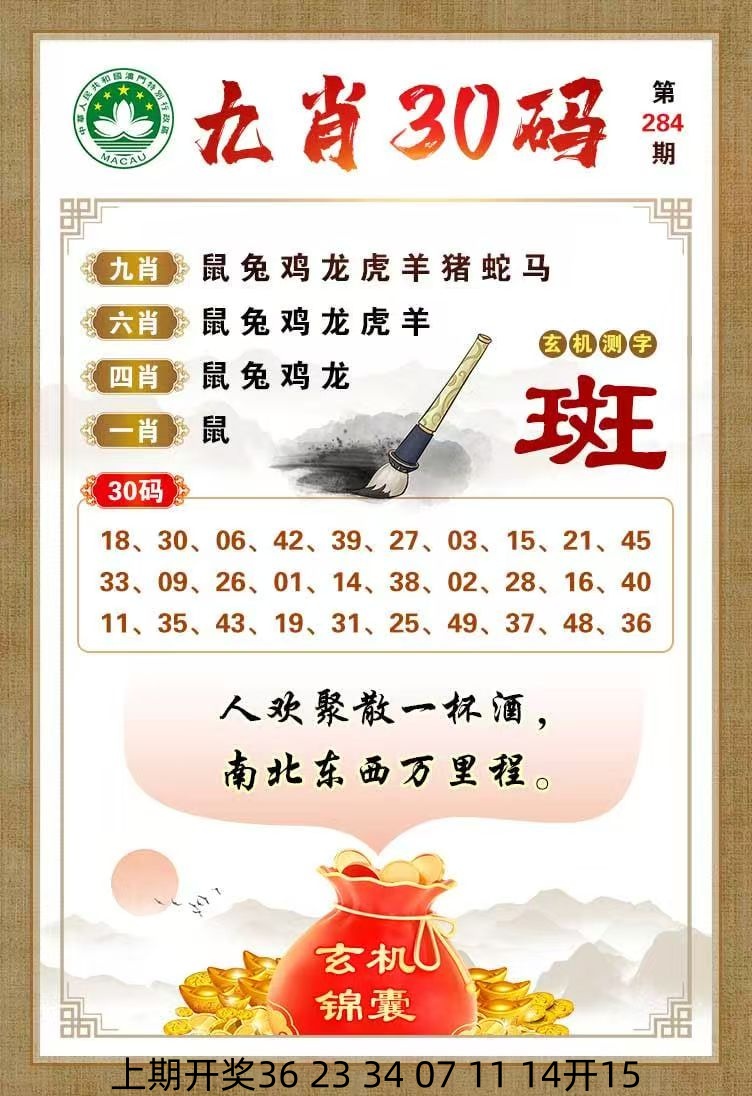 284期三肖 | 鸡猪蛇 | 开:發00准 |